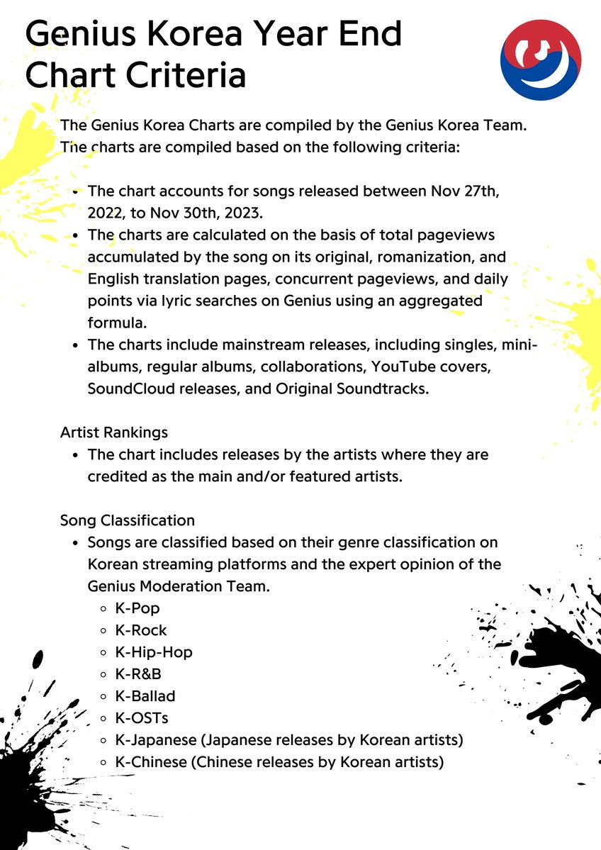 Crafted with an eye for detail and a passion for the pulse of the streets, the Genius Korea Team has curated this chart with a keen understanding of what fans have been nodding their heads to. They’ve scoured the scene from November 27th, 2022, to November 30th, 2023, taking into account everything from the lyrics fans can’t stop searching to the tracks streaming non-stop in multiple languages. It’s this methodical approach that guarantees the tracks listed are the ones that have made the most significant impact.
