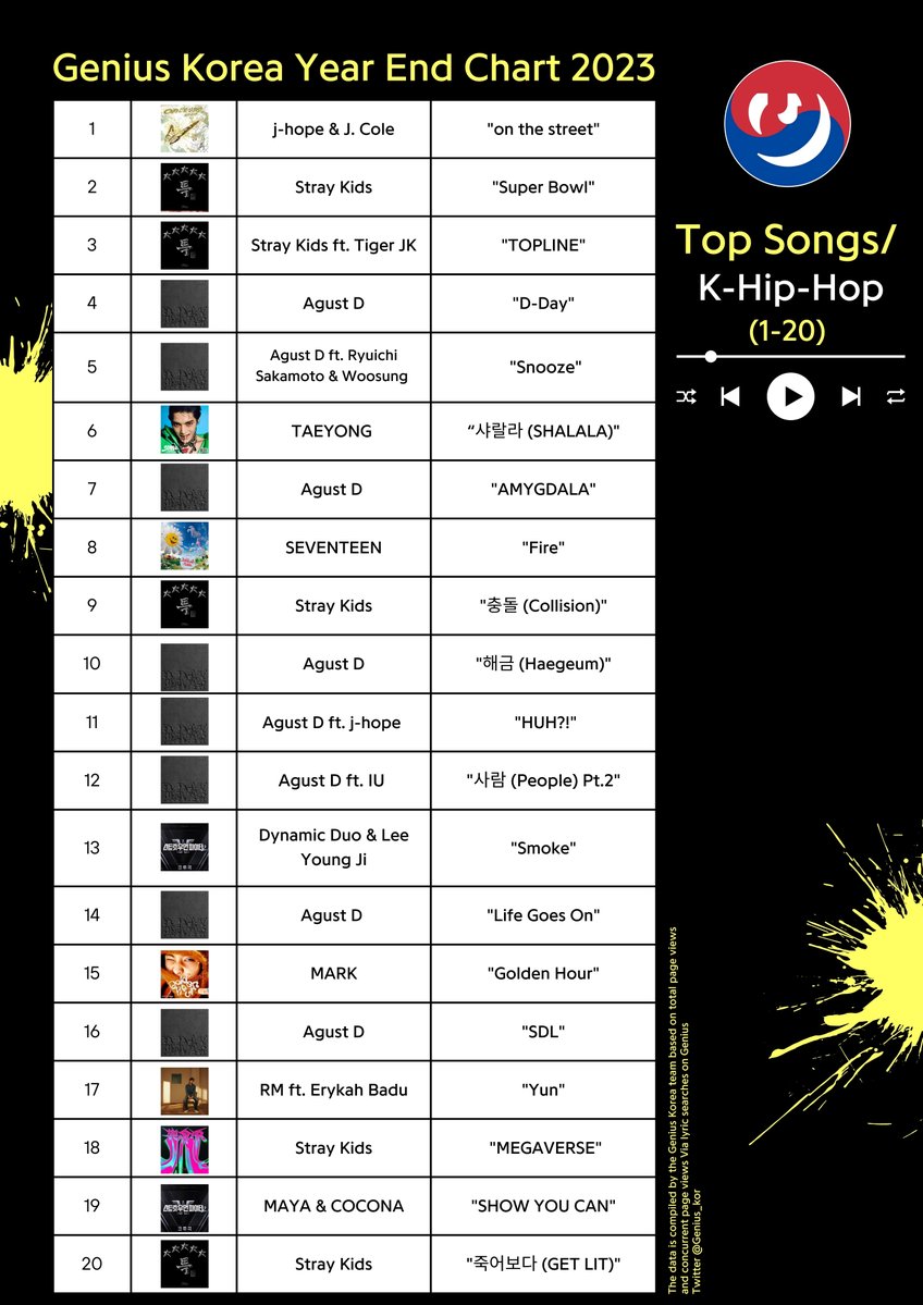 Top K-Hip-Hop Songs 2023 From Genius Korea Year-End Chart